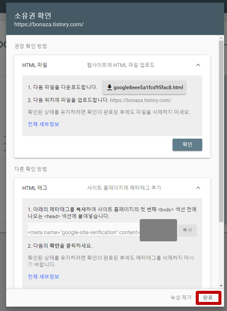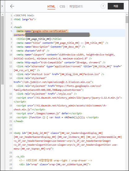 - 구글 써치 콘솔에서 복사한 meta 태그 <head> ~ </heml> 부분안에 붙여넣기 (head 부분 아무대나 붙여넣어도 됨)