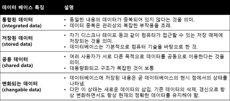 데이터베이스의 1차개념은 정형 데이터만을 관리하였으나, 빅데이터의 출현으로 비정형 데이터를 포함한 2차 개념으로 발전하였다.