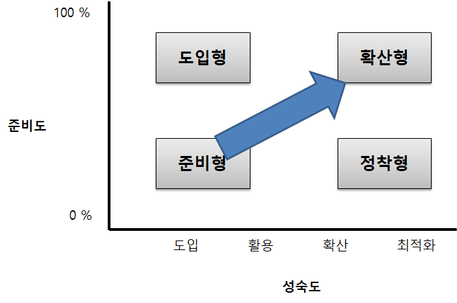 - 분석 성숙도 4단계: 도입, 활용, 확산, 최적화 단계
