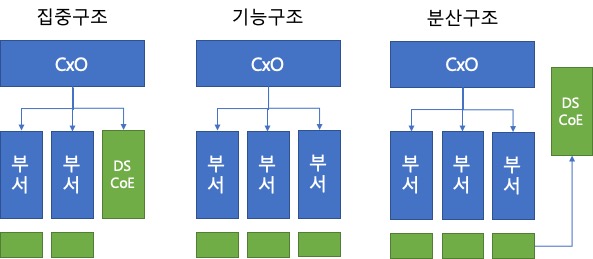 - 집중구조: 별도의 분석 전담 조직 → 현업 업무부서의 분석 업무와 이중화/이원화 가능성