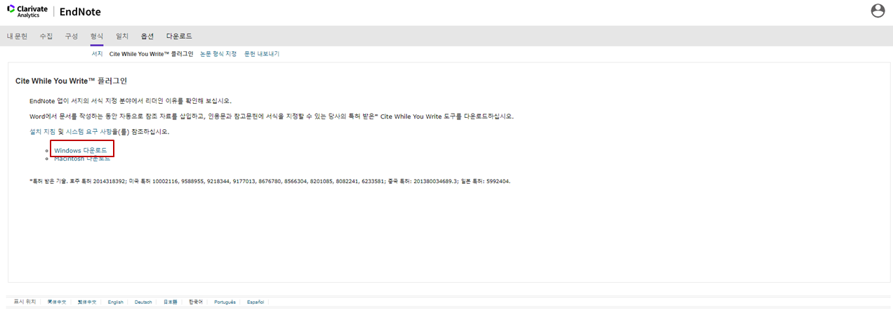 형식 > Cite While You Write 플러그인 > windows 다운로드